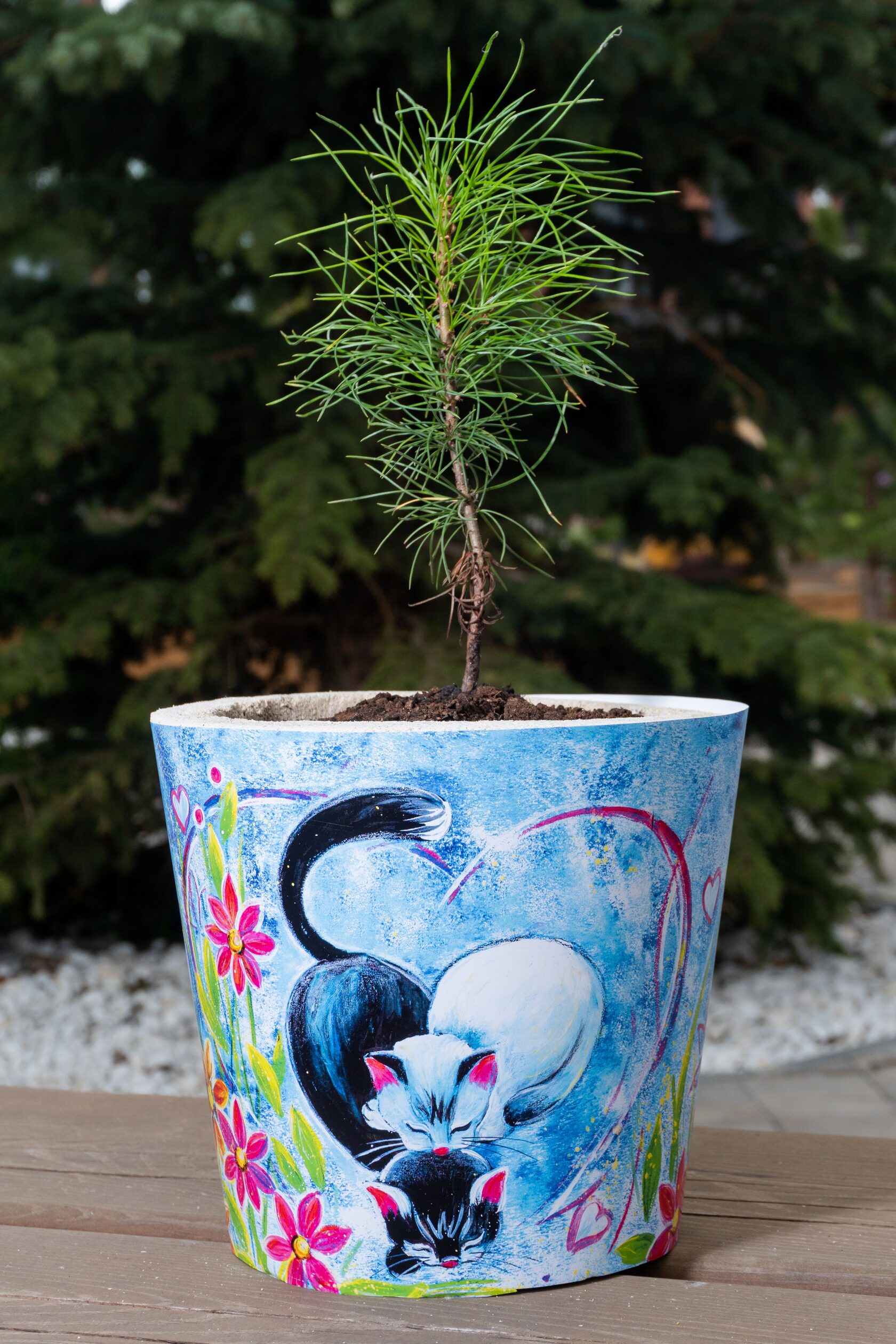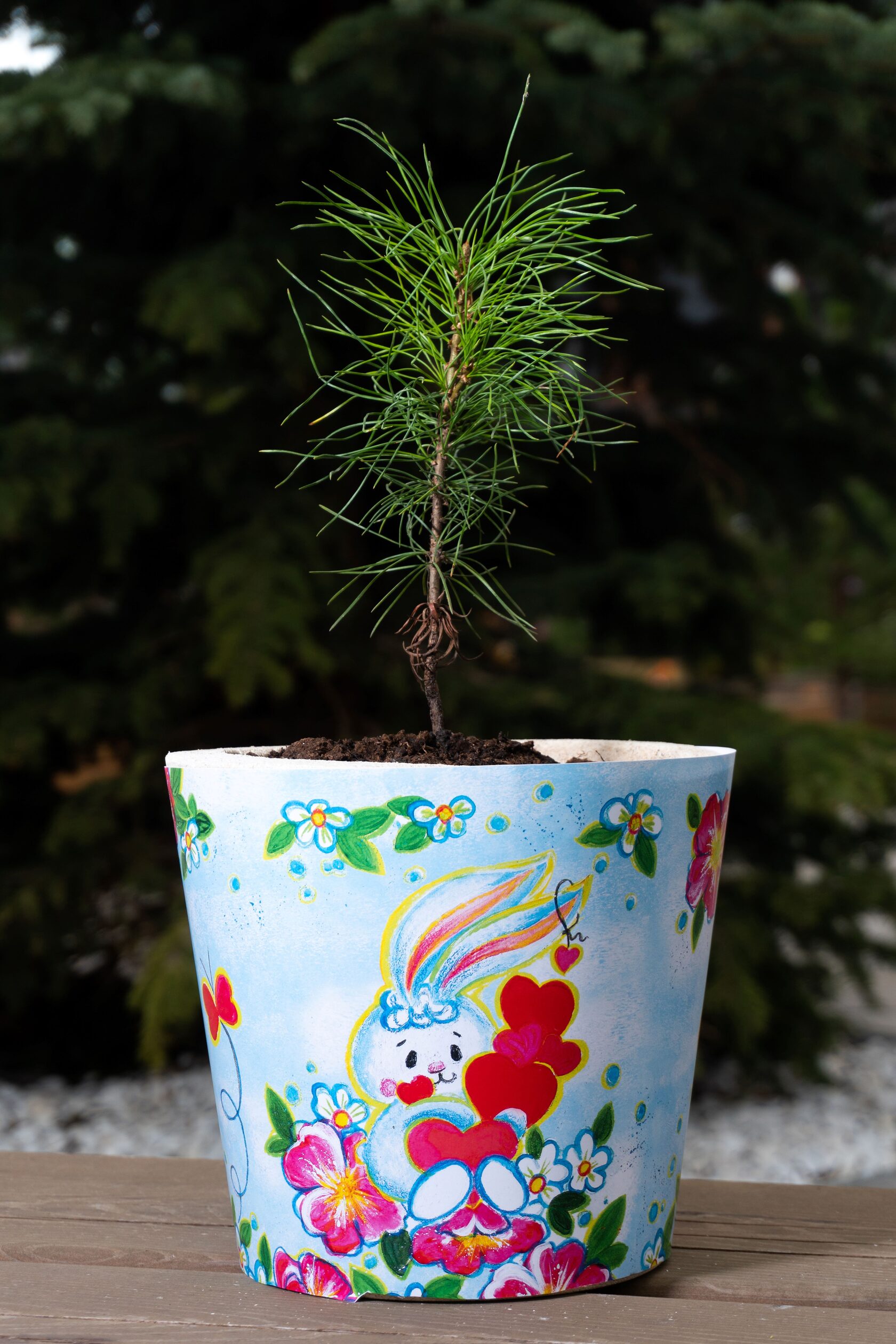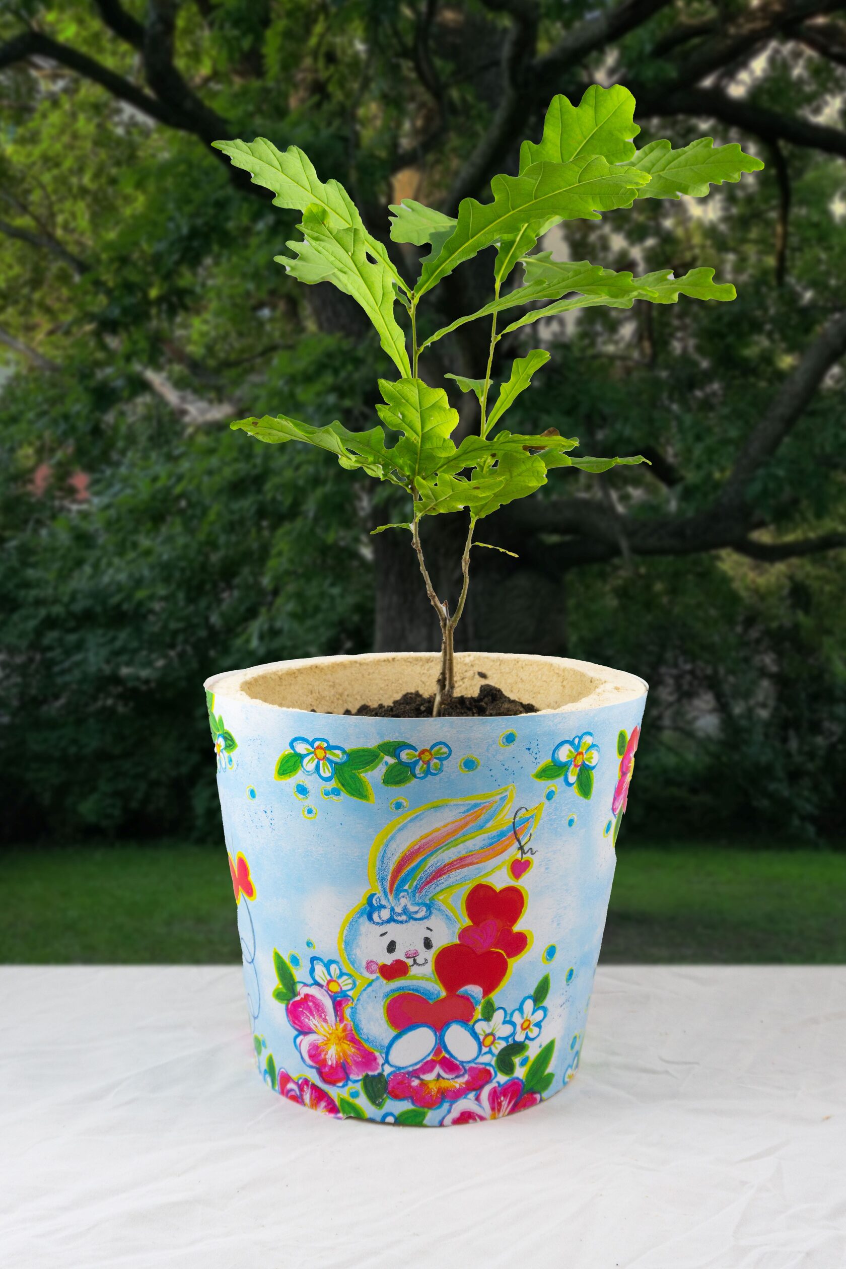 Кашпо, обложка - полноцветная печать, саженец дерева (ЗКС), почвогрунт, инструкция